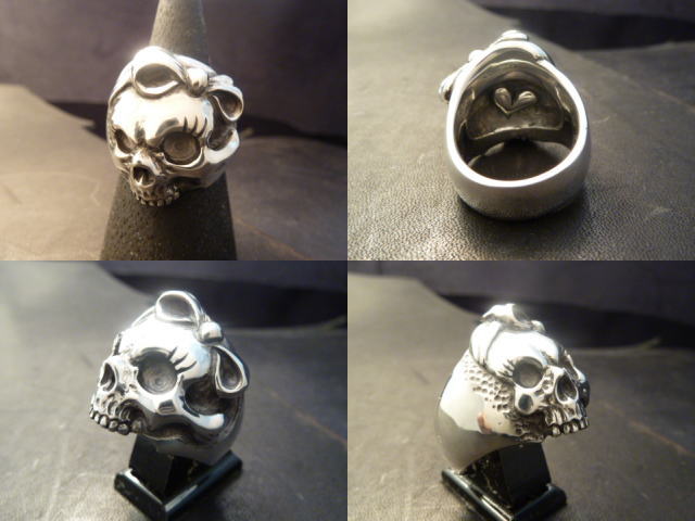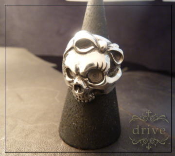 ダークな面を強調しつつも「少女的である事」を基礎としたゴシックアンドロリータがテーマのスカルリング。 ヘッドドレス(頭に身につけるハット等のアイテム)にリボンのヘアバンドをつけた少女→スカルという