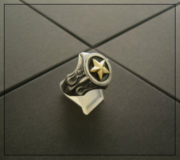 >会社概要 >ご利用案内 ブランド drive [ドライヴ] 品番 r-35 品名 エターナルスター シルバーリング 税込み価格 \25,920円 送料代引き手数料無料 幅 19mm 厚み 7mm 重量 約18g 素材 silver925 k18 雑誌ネクストファイル16でコラボレートした別注モデル「エターナルバタフライ」のアレンジモデル。 ワンポイントでゴールドスターをアピールしたゴシックリング。ハードな中にスタイリッシュな大人の雰囲気を演出している。 サイズ サイズ 15 16 17 18 19 20 21 22 23 数量 数量 1 2 3